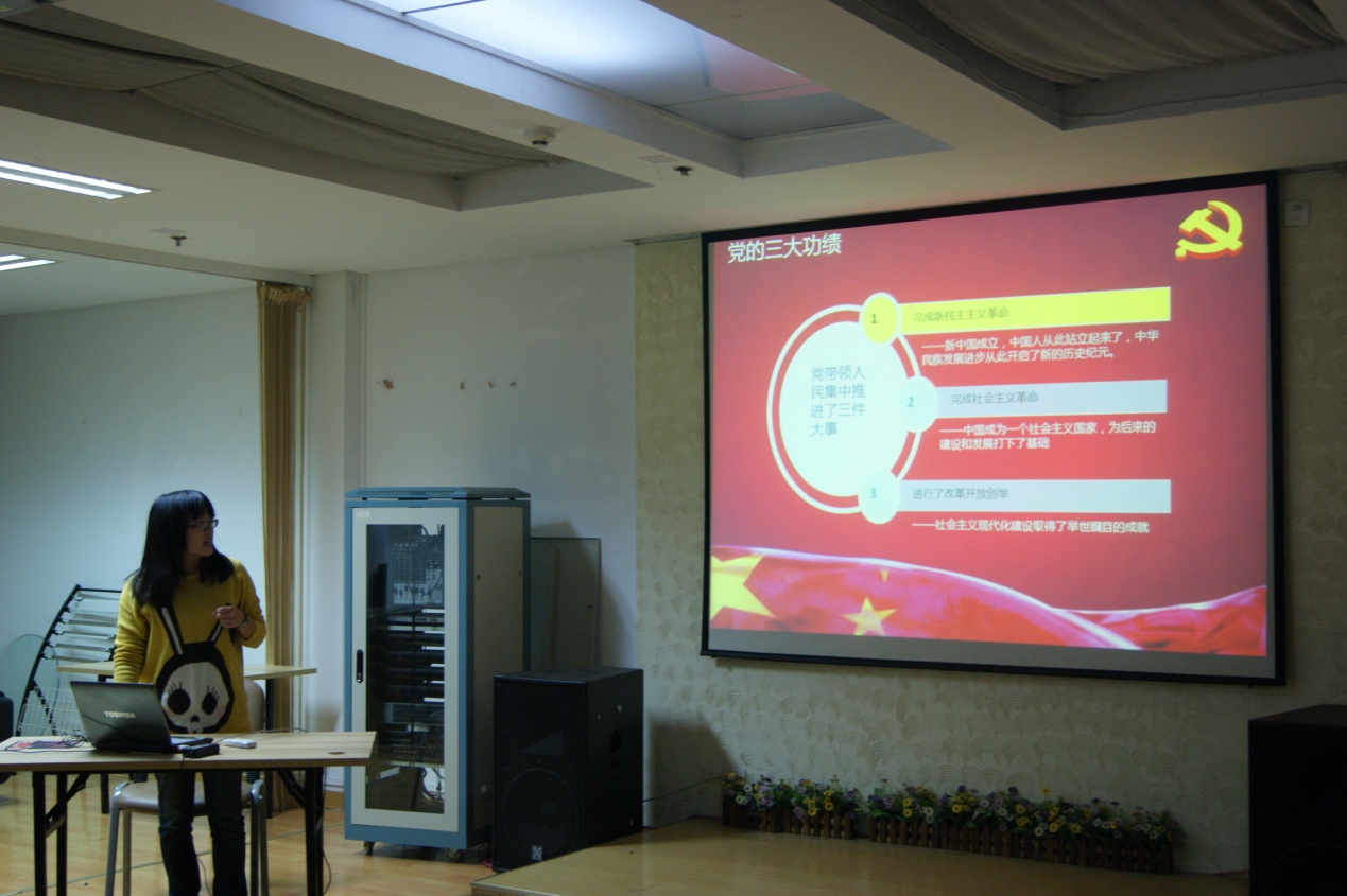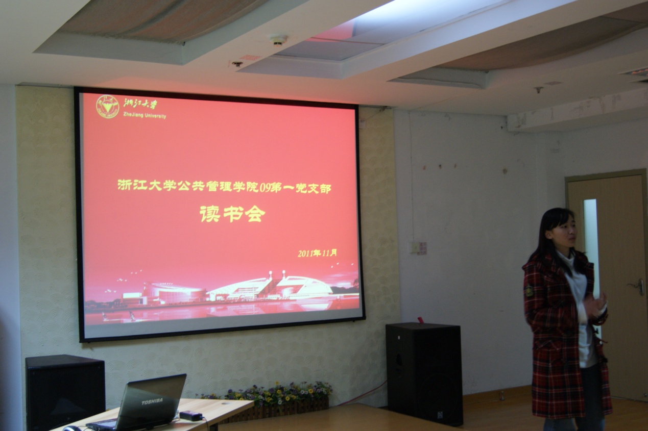 2009级本科生第一党支部于2011年11月30日晚上九点,在紫金港剧场B座311室举行了以“理论武装,梦想起航”为主题、以“胡锦涛总书记在清华大学百年校庆上的讲话、胡锦涛总书记在庆祝中国共产党成立90周年大会上的讲话、十七届六中全会会议精神”等2011年国内发生的三件大事为主要内容的读书报告会。本次会议由支部宣传委员陈晓宇主持,支部17名党员(含10名预备党员),3名入党积极分子代表到场参加。学院党委书记包迪鸿老师作为特邀嘉宾亲临报告会现场,并对支部成员的理论学习情况和报告会进行指导和提出宝贵建议。