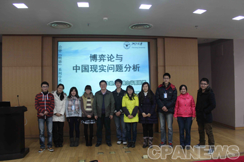 2011年12月20日18:30,应公共管理学院学生会之邀,浙江大学公共管理学院土地资源管理系副教授蒋文华老师在紫金港校区国际会议中心140室为同学们带来了“明德”系列讲座之“博弈论与中国现实问题分析” 主题讲座。
