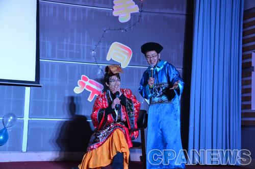 公共管理学院院长姚先国教授首先上台为本次晚会致辞。姚院长总结和肯定了学院一年来在各方面所取得的突出成就,值此新年之际希望大家再接再厉,在新的一年里再创佳绩,为公共管理学院的明天更加辉煌而不懈努力!随后,姚院长应邀一展歌喉,以一曲《康巴汉子》将晚会推向了第一个高潮。