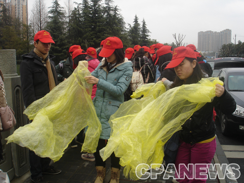 早上七点三十,志愿者们出发。在今天这个没有雨的日子里,志愿者们终于闻到了春的气息:初春的风里夹杂着嫩叶的清新味;听清了春的声音:春风吹拂万物的声音;看清了春的美姿:大地万物一派欣欣向荣!志愿者们的欢声笑语在每个经过的地方飘荡。
