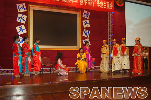 接着的一段寝室生活的DV,让我们在为那份珍重的友谊感动的同时,拉开了今晚的第二篇章:生如夏花。社会学专业的毕业生用他们的诗歌朗诵《致我们终将逝去的青春》,哭喊出:再见朋友,再见青春,再见大学!一部小品,一片欢乐,各种搞怪,无数掌声,在土地资源管理的《穿越》里,我们结束了今晚的第二篇章。