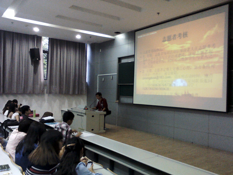 2012年10月27日下午4时,公共管理学院本科生分团委在西2-102教室召开“同一片蓝天,同一个梦想”和“爱满心房,情暖夕阳”志愿者大会及培训活动。本次大会旨在介绍这两个志愿者活动的内容以及对志愿者进行培训。百余名志愿者参加了培训,现场气氛十分热烈。