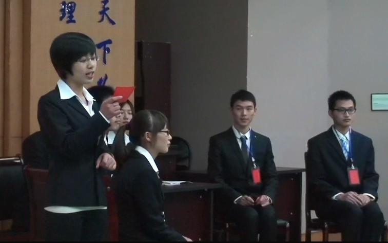 接下来进行的团队研究成果展示及现场答辩环节将比赛推向了高潮。首先出场的北辰队以一个精心制作的视频引入他们探讨的关于慈善制度的问题,提出了P2P网站和借鉴淘宝信用制度的模型,试图解决中国社会慈善机构信度不高的问题。第二个出场的中尖队一改传统的PPT演讲模式,在公开答辩的现场召开了一个杭州市居家养老服务峰会,通过峰会的形式介绍了居家养老模式、他们的研究框架、数据分析、现状问题及解决建议。最后一个上场的royal family将关于杭州市人行横道资源配置的民主恳谈会搬到了公开答辩的现场,通过市民代表与市长和专家的交流提出了他们发现的人行横道资源配置存在的问题并针对每个问题提出了建议。
