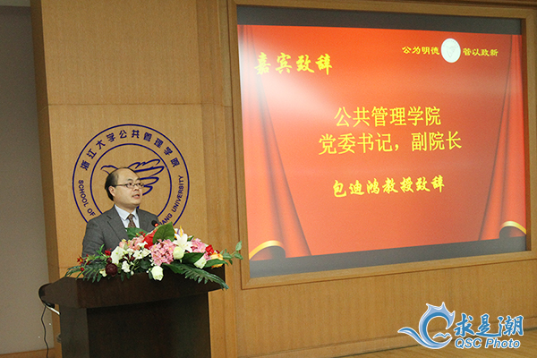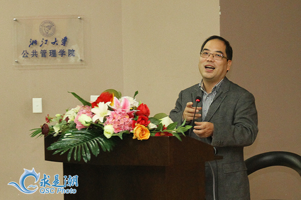 在三支队伍展示完毕后,浙江大学公共管理学院副院长郁建兴教授对三支队伍的表现进行了精彩点评。随后,由浙江大学公共管理学院党委书记、副院长包迪鸿教授揭晓第七届模拟市长论坛的主题——改革是中国发展的最大红利。