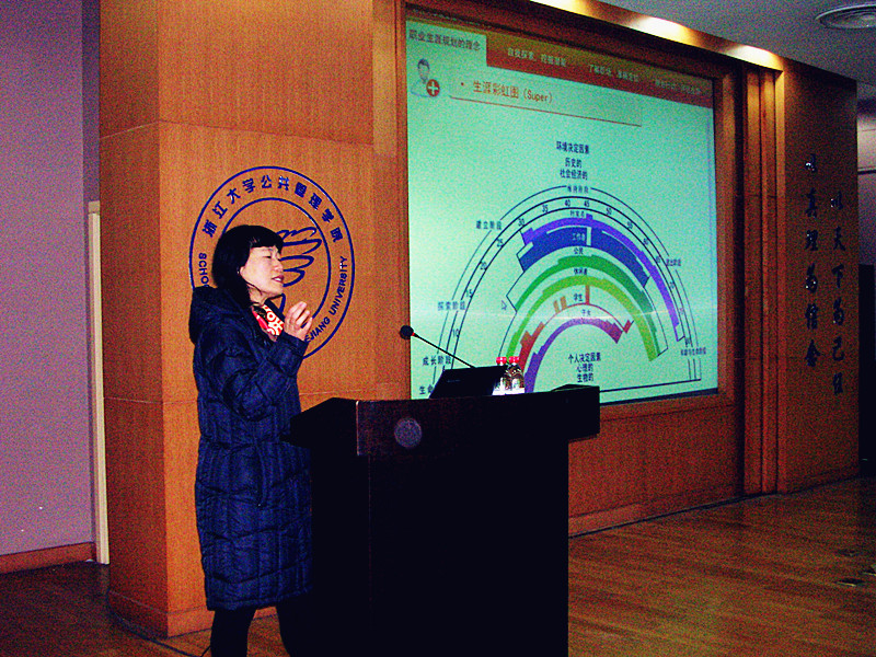 2013年1月4日下午1点30分,浙江大学公共管理学院寒假社会实践活动之生涯人物访谈培训在国际会议中心140室正式开始。本次培训主讲是浙江大学就业指导与服务中心副主任朱慧老师,旨在使在场每位即将踏上院友寻访之途的学子们能掌握基本的访谈内容和技巧,在寒假的访谈中顺利得到自己所需,为今后的人生道路做好铺垫。