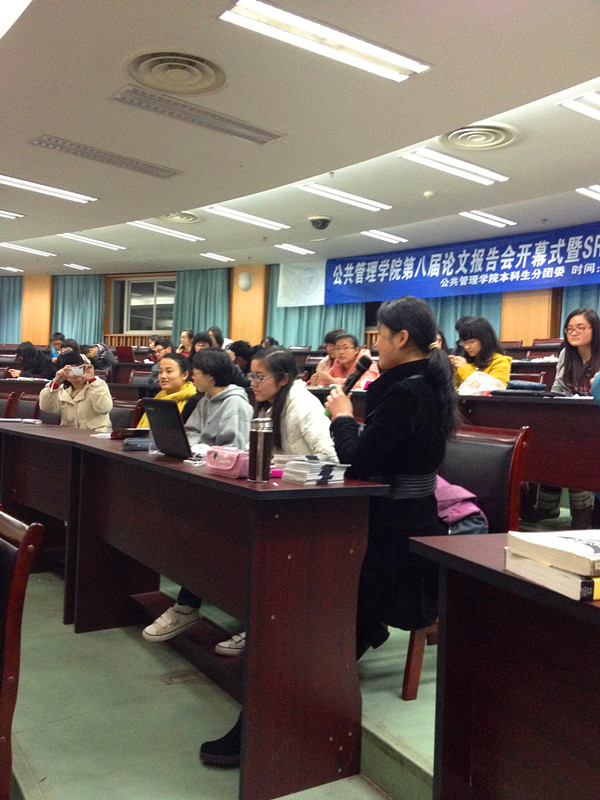 2013年3月24日晚,公共管理学院第八届论文报告会开幕式暨SRTP学长交流会在国会140顺利举行。本次活动由浙江大学公共管理学院本科生分团委承办,旨在提高学生学术能力,增强学院学术氛围,指导高年级同学们更好地发表自己优秀的科研成果,并为一些初次接触科研活动的低年级同学指导迷津,提供成功范例。