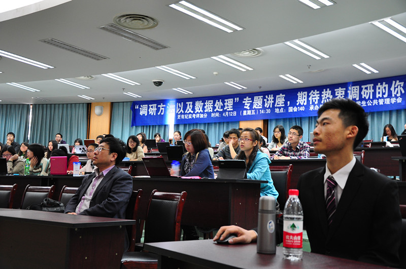2013年4月12日下午2点,第七届模拟市长论坛系列讲座之“调研方法以及数据处理”专题讲座在国会140顺利举行,浙江大学公共管理学院社会保障与风险管理系米红教授担任本次讲座的主讲人,向同学们介绍了调研方法及数据处理方面的知识技巧,为同学们更好地开展调研奠定了坚实的基础。