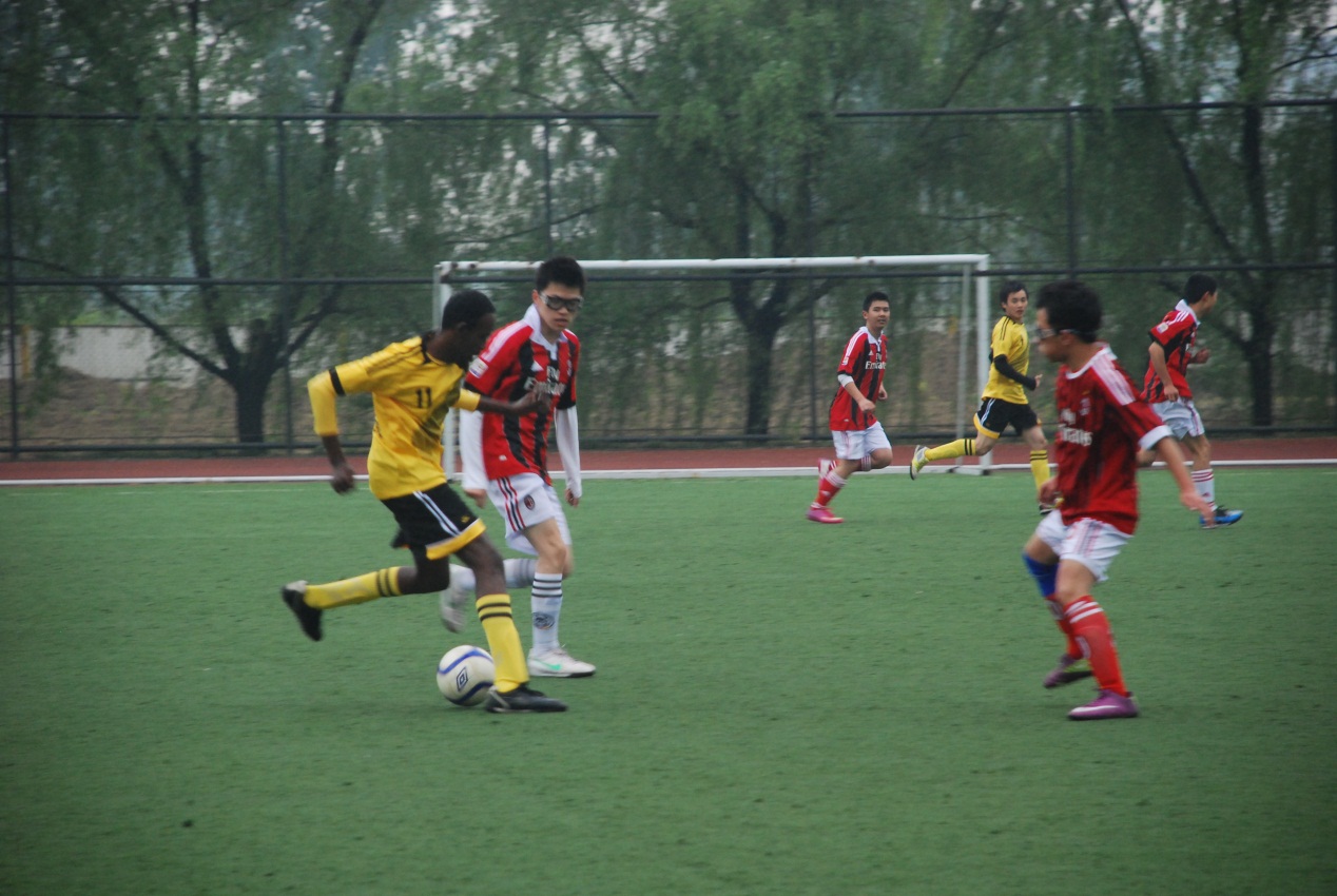 4月20日上午11时,由公管学院对阵医学院的三好杯男足小组赛在田径场进行。