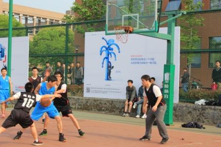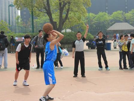 4月21日下午2:50分,在篮球场上演了最后一场男篮小组赛的较量——公管对阵高分子。最终,我院男篮以45:24轻取高分子。