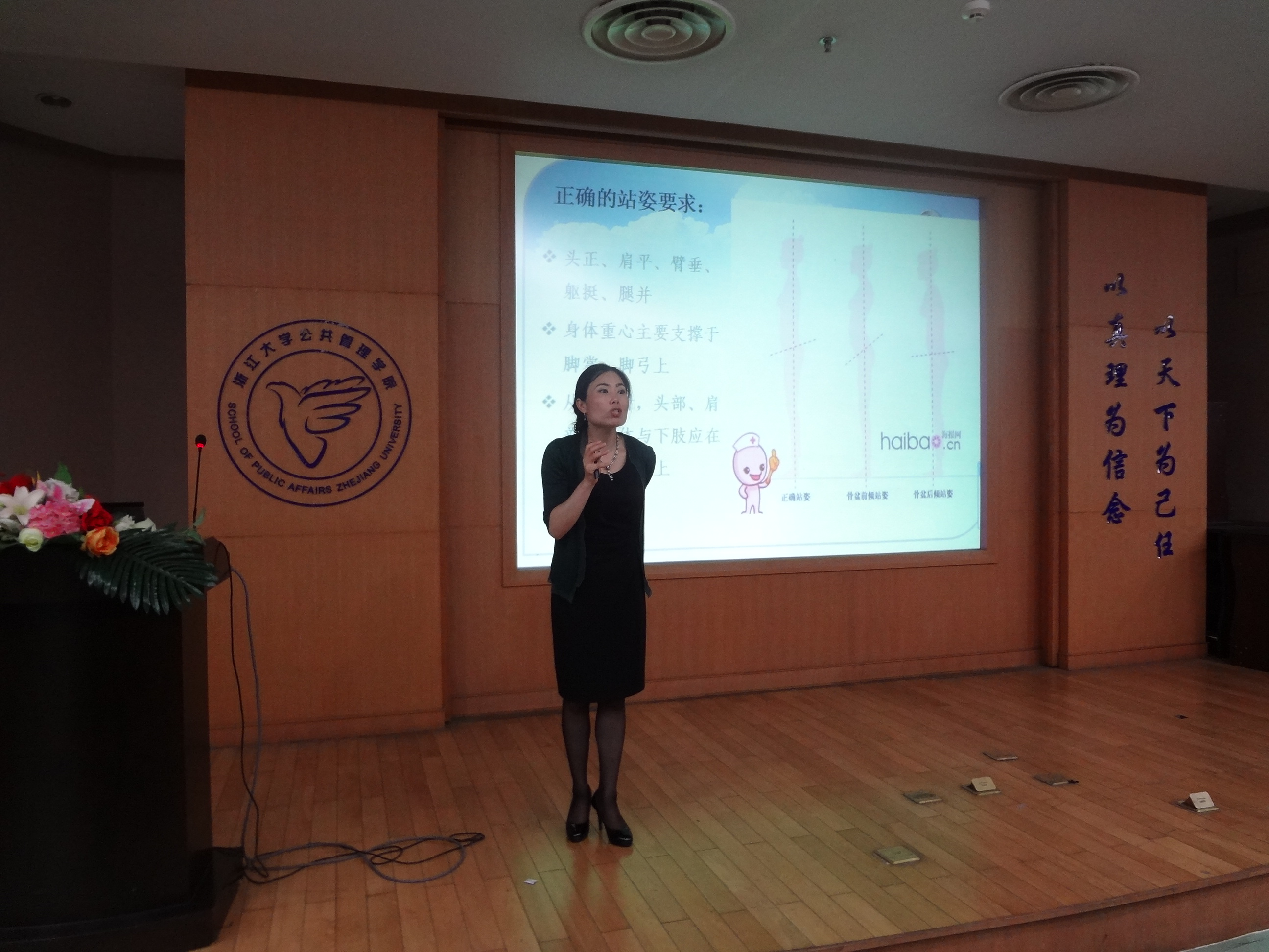 之后便进入了本次启动仪式的重头戏——包松老师的“形态礼仪”培训讲座。讲座过程中,包老师妙语连珠,“人生就像一场双人舞”“衣着开始讲究,人生开始精彩”,风趣幽默的同时充满了智慧。