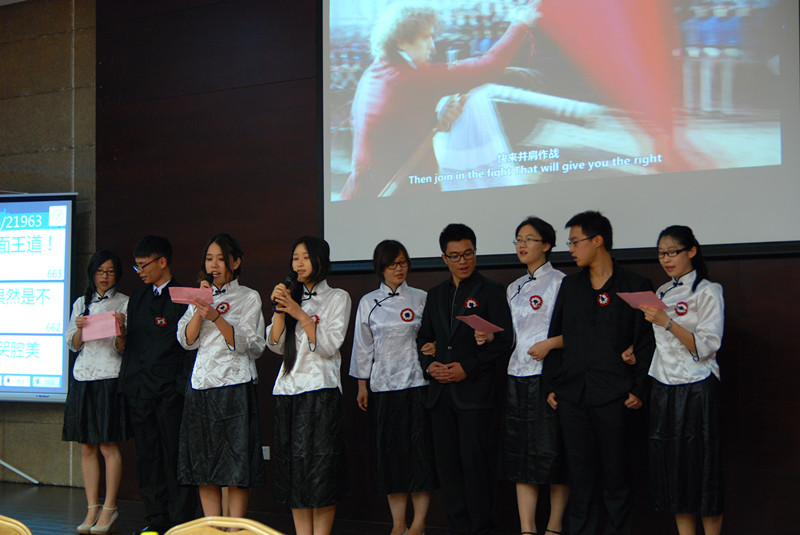 人生若只如初见,一段回忆初入校园的VCR,让全场师生用回忆拉开了今晚的第一幕:初会。由行政管理体育班《大型走秀——别样的你我》为我们呈上晚会第一曲,让大家眼前一亮的是这群才将走出校园的毕业生们的十足魅力。随着一曲悠扬的独唱《我的心里只有你没有他》,信息资源管理班的毕业生们走上台来,一边唱动人的you raise me up,一边跳动着青春的步伐,让在场的观众们也随着旋律摆动起来。