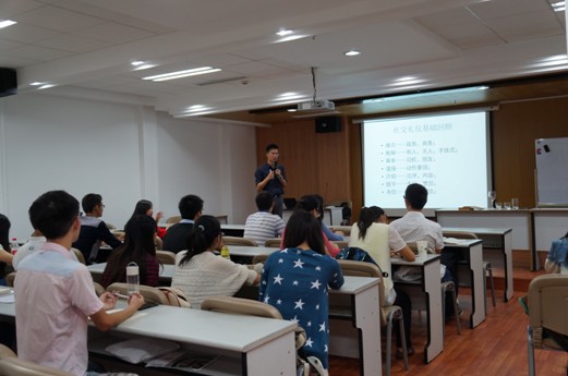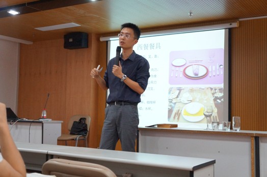 公共管理学院人际交往训练营系列讲座——主题为“博雅修身,笃行友贤——中西餐礼仪”的讲座于9月27日14:00在浙江大学紫金港校区国会120如期开展。本次讲座由公共管理学院卓亨逵老师主讲,参与人员为公共管理学院人际交往训练营成员,讲座内容精彩丰富、实用有趣,吸引了大家的注意。讲座开始时,卓老师先带领大家进行了社交礼仪的基础回顾,加深了大家对上学期礼仪内容的印象,同学们积极参与讨论与发言,讲座气氛十分活跃。接下来,卓老师讲解了介绍时与书信时的社交礼仪,对同学们有极大的帮助,介绍时“地位尊者先知”、握手时“地位高者先伸手”等口头禅也激起了大家的学习兴趣。