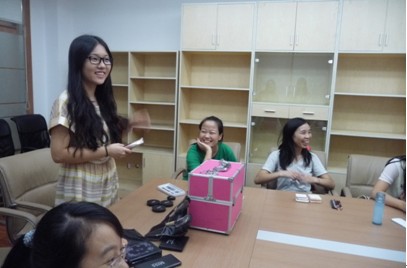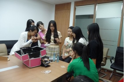 2013年9月26日晚上9点,化妆培训活动在蒙民伟楼365-1举行。作为人际交往训练营的一个子活动,本次培训邀请了潘临灵老师来给同学们做团体辅导。潘老师将知识的讲解与实战练习相结合,给在场的同学上了一堂生动的妆容培训课程。