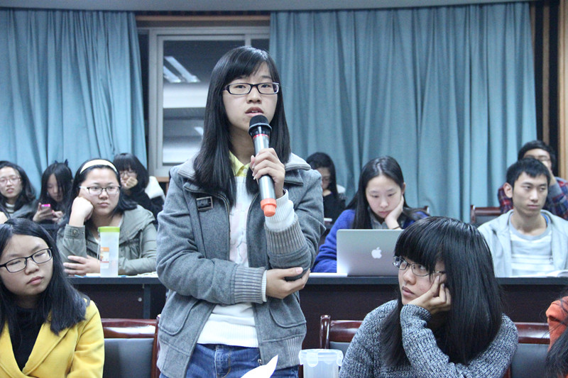整场讲座过程中,现场气氛欢快,同学们兴致勃勃,现场爆发出数次掌声。讲座最后,同学们踊跃提问,而主讲人的解答也十分真实详细。在讲座结束之后,刘洋还和我院傅荣校教授以及其他同学进行了交流。