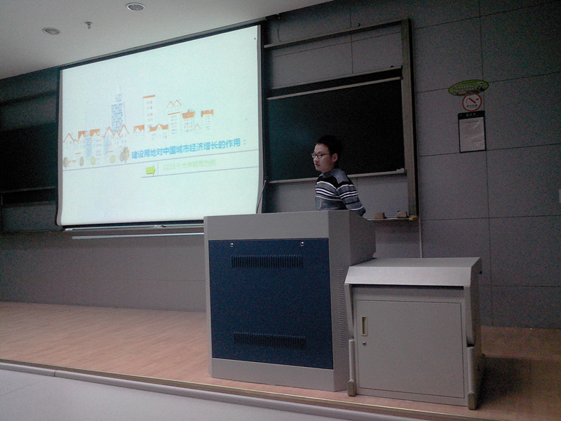 首先由蒋晨学长上台交流。蒋晨学长直击主题,详细解读了做好调研报告以及论文撰写的六个方面:选题、材料、数据、语言、格式、参考文献。蒋晨学长重点指出了选题的创新性以及大小的特点和语言的专业化。此外,材料数据的搜集整理以及格式要求,蒋晨学长也一一展开分析。解读完理论方面的知识后,蒋晨学长以自己论文报告会二等奖的获奖作品为载体向在座同学们展示了如何在实践中运用这些知识技巧。同学们一览优秀作品的同时,也聆听了学长的参赛心得,受益匪浅。最后,蒋晨学长特别强调了一下附加参考文献的格式——容易被忽略却又繁琐的细节。