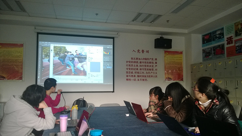 下半场的讲解由朱韬同学完成。在吴同学讲解的基础上,朱同学为大家进行了更细一步的介绍,从图片的选取,到剪裁,再到后期的一系列美化修饰,还将海报制作的具体步骤详细给每位到场同学进行讲解。在了解了相关海报制作要点之后,参加的同学们都跃跃欲试,都想通过自己制作出一份精美海报为下次活动宣传取得良好效果而添砖加瓦。在最后,朱同学更是和大家分享了一些常用的素材网站,如人人网公共主页,知乎,求是潮网站等。同学们对两位同学的幽默讲解反响十分热烈,认真听讲,遇到问题彼此间相互讨论,现场气氛十分活跃。