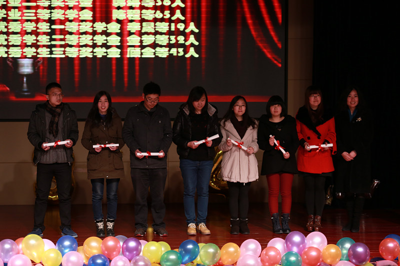 为表彰在过去的一年中的成果,晚会还准备了颁奖环节,邀请了到场领导为获得各项奖学金和荣誉称号的同学和老师代表颁奖,为大家来带了新一年的正能量。