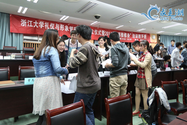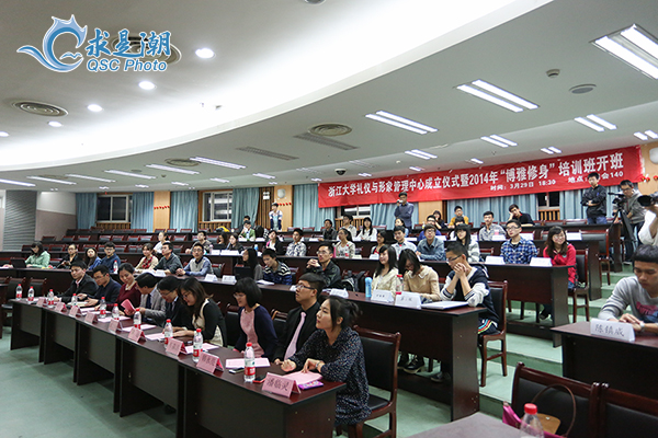 2014年3月29日18:30,浙江大学礼仪与形象管理中心成立仪式,暨博雅修身礼仪与形象管理培训班开班仪式及第一次讲座在国会140召开。党委学工部部长邬小撑、公共管理学院党委书记沈文华老师、党委副书记包松老师、团委书记卓亨逵老师以及礼仪与形象管理辅导员工作室的各位辅导员老师都参与了本次活动。