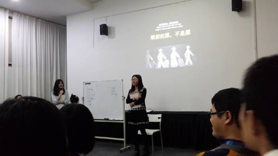 在下午3点,我们与苗青老师共同参加了旅社“眼前的黑,不是黑”领导力工作坊的活动。我们30多个参与者被安置在伸手不见五指的环境中,在2个多小时的黑暗旅程中,只能凭触觉、嗅觉和听觉去感受周围的一切。初进入黑暗,大家心中不安,但是在耳边响起熟知的声音时,大家很快就克服了黑暗中的恐惧,体会着一种快乐、友爱、合作的氛围。在黑暗的环境中,我们切身体验到视障人士比常人更加艰难和孤独的生存环境,体验到自己在非正常状态下的感官潜能以及话语沟通的重要性。