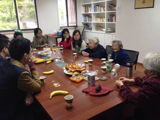 这场谈话持续了很久,结束的时候党支部同学们和老党员们都觉得意犹未尽,依依不舍,老党员们不断地挽留同学们再坐一会、再吃点东西、再说会儿话,他们说与同学们在一起能感觉到自己变得年轻了。最后同学们和老人们合影留念,留下了联系方式,并承诺还会再来看望老人后,在老党员们慈爱不舍的目光中离开了。