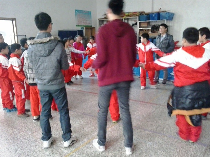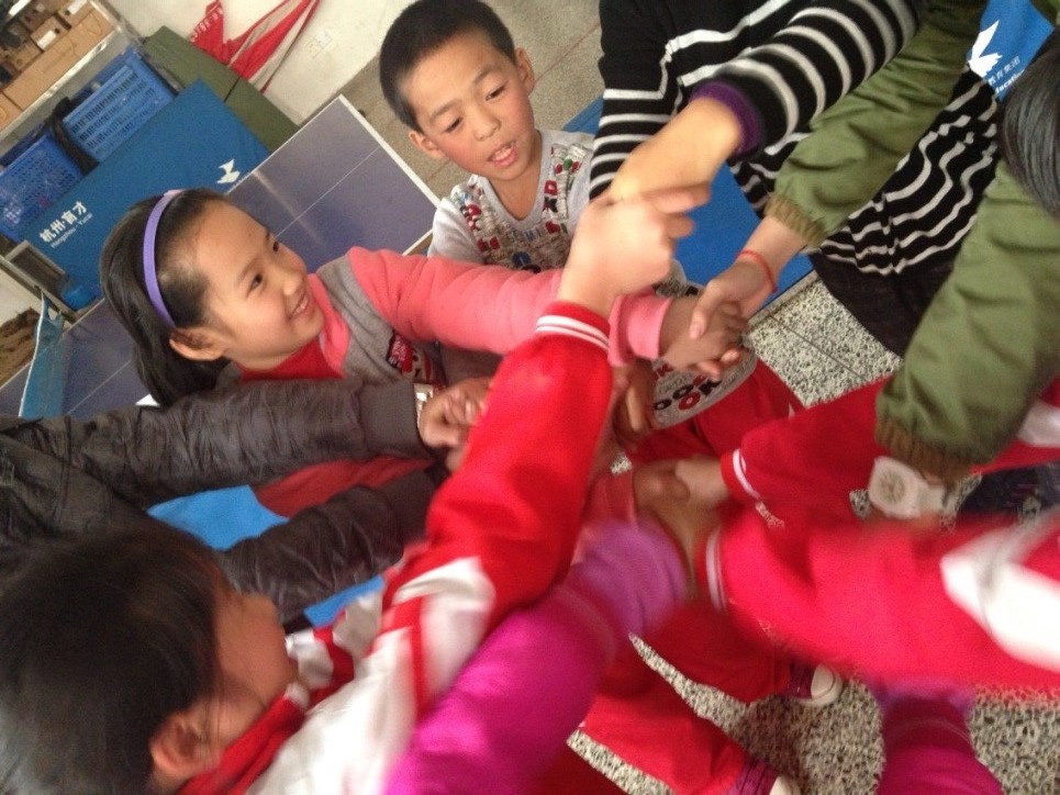做完这个小游戏后,我们又组织孩子们玩了“解手锁”的游戏,大家的手缠绕在一起,只有相互协作、按照一定的顺序才能顺利解开。在游戏中,孩子们绞尽脑汁,不断尝试,一次次失败,一次次又重新开始,并不断取得新的进展。当最后一个“锁”被解开时,孩子们发出了胜利的欢呼,脸上洋溢着快乐的微笑。之后,我们还组织孩子们到操场玩了投篮、跳绳等有意义的小游戏,时不时的笑声与欢呼声一次次回荡在校园之中。