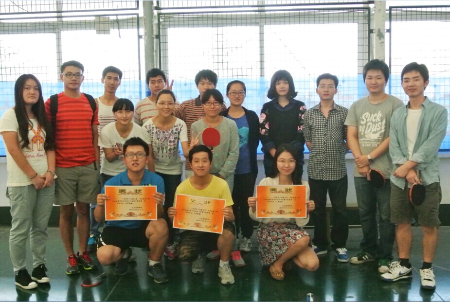 在运动员合影之后,我们采访了冠军队伍土地管理系代表队中的一名博一新生陈准,他对于本次比赛颇有感慨:“这次比赛打得挺激烈的,毕竟是团体赛,可能我在我们队里水平还算可以,但是团体赛不仅仅看个人水平,只看个人发挥是不能赢得比赛的,还要有团队的精神、团队的合作吧。感觉打完比赛以后心情非常开心!”
