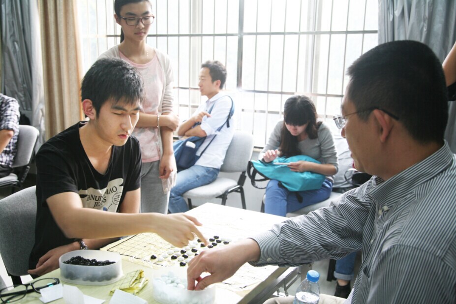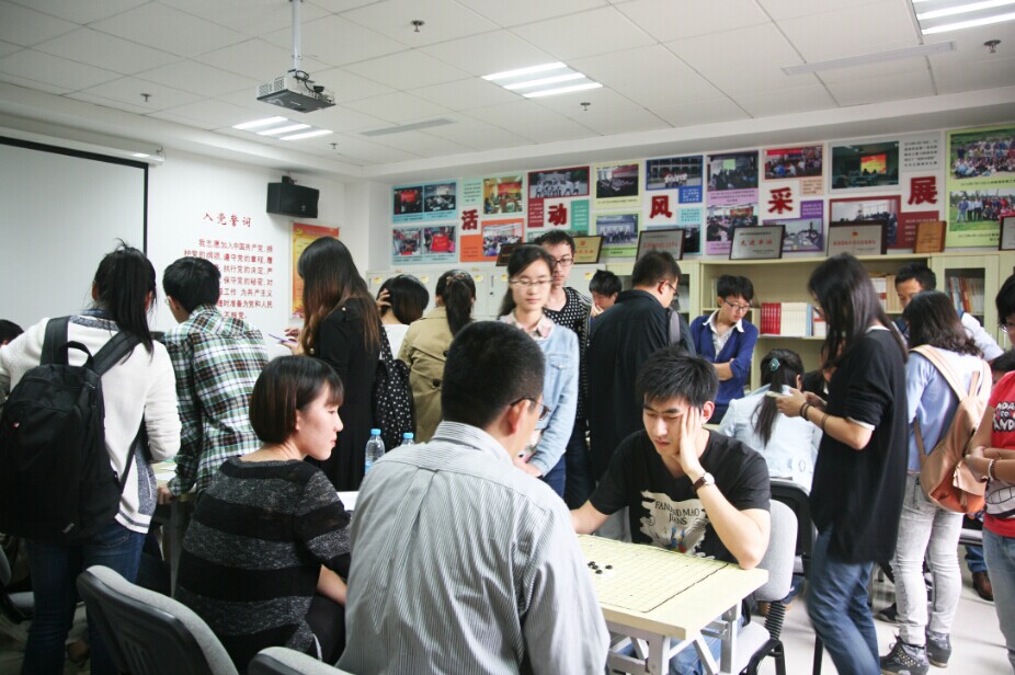 最后进行的五子棋比赛分成A、B、C三组进行,战况相当激励,比赛现场次序井然,气氛严肃,无不透漏着“你争我夺”互相厮杀的激烈场景。选手们在棋盘上都毫不谦虚,你来我往,招招逼人,各有千秋。尤其是代表政治学系出战的同学与代表社会学系出战的老师两人实力不相上下,黑白子之间不断变换,充满着惊奇,稍有不慎,满盘皆输,局面僵持了很久也难分胜负,最后政治学系代表队险胜。