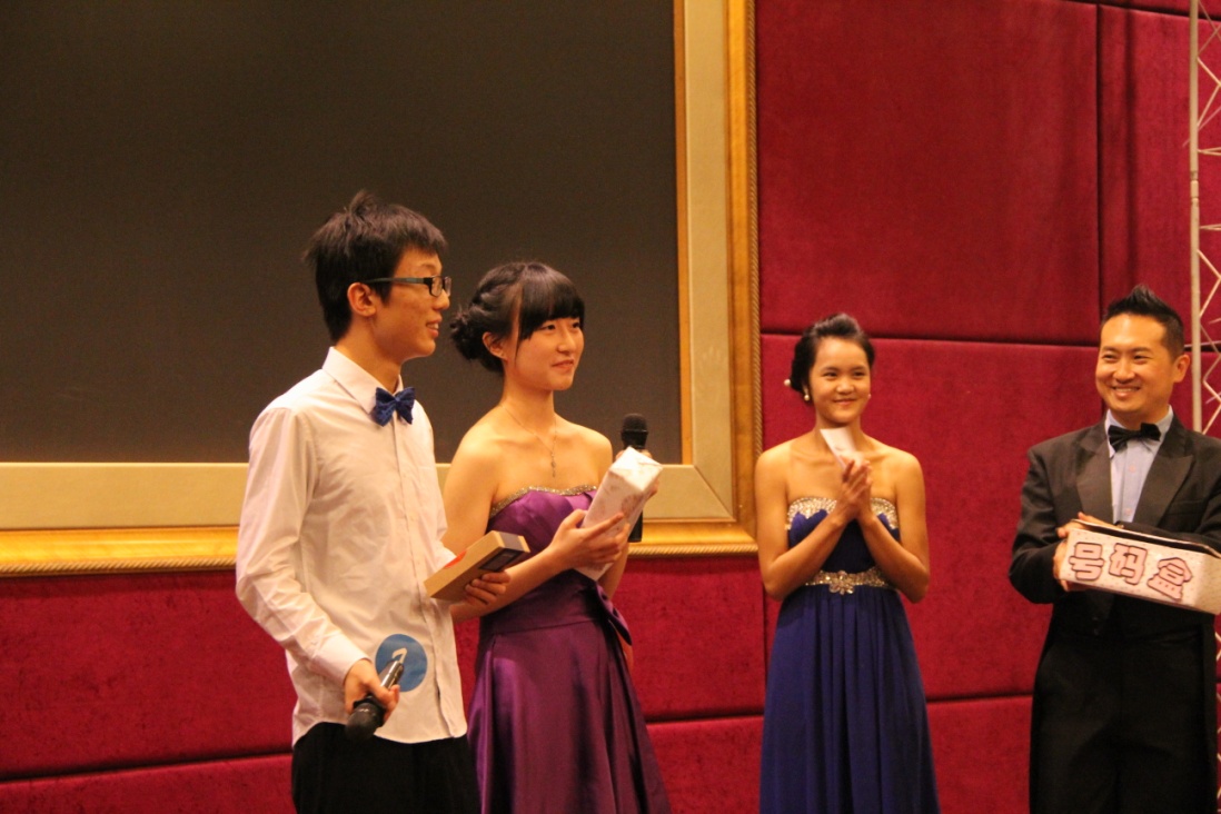 接着,活动进入最激动人心的环节——“人气男生/女生”评选。在隆重的音乐中,包松老师宣布“人气男生/女生”得主——人气男生陈镇威、人气女生范明明,并且为他们颁发了精美的礼物,寄予新的希望。