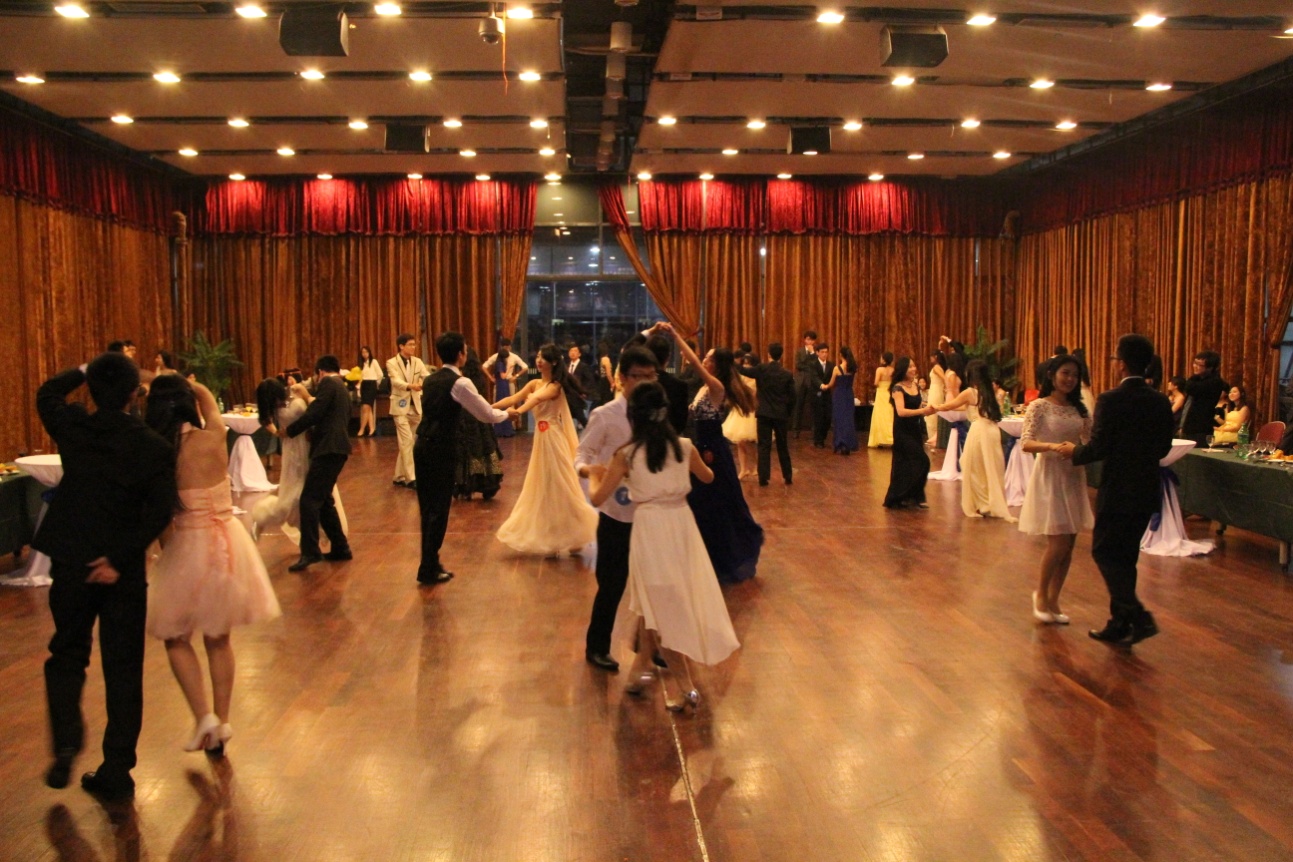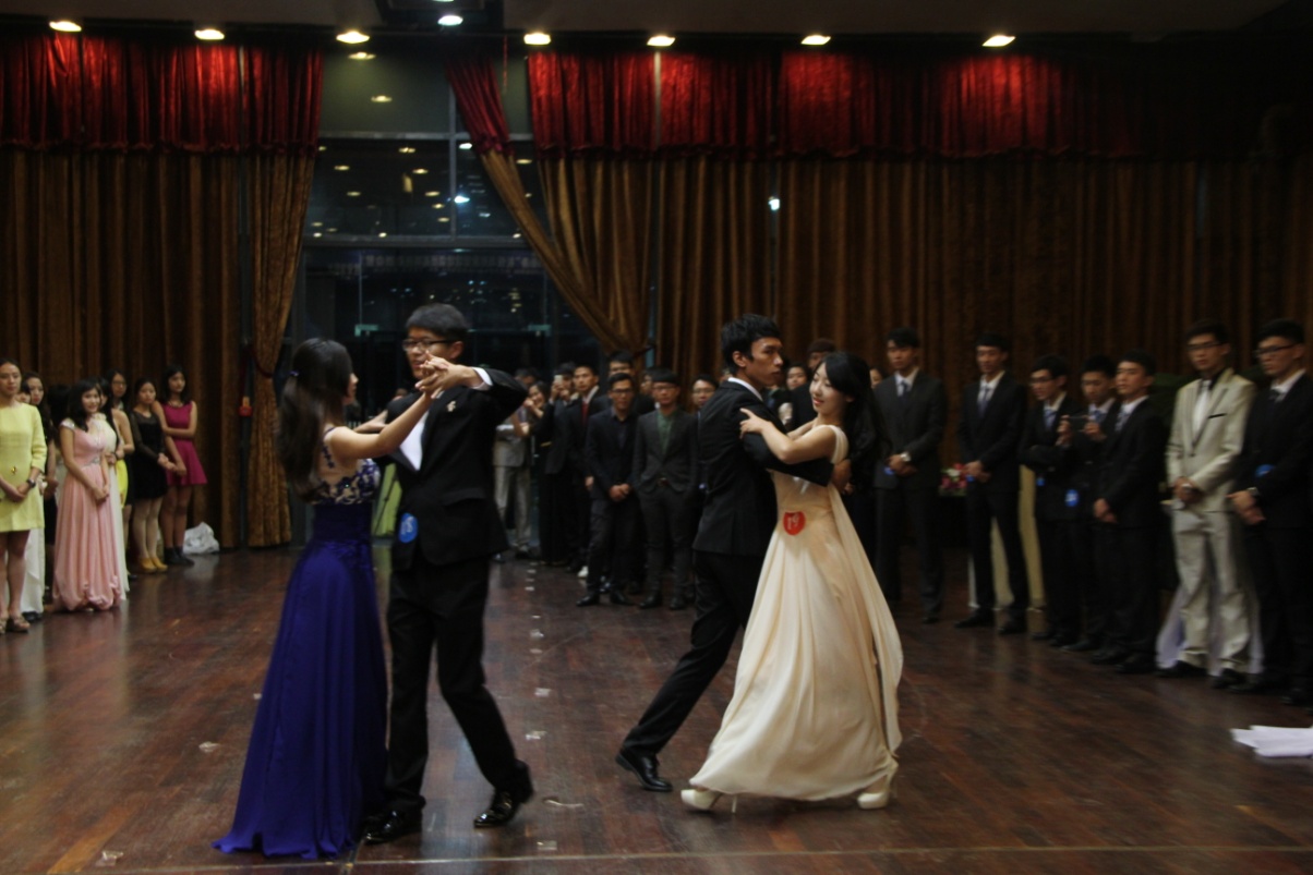 步入会场,男女学员分列于舞池两侧,主持人宣布活动正式开始。
