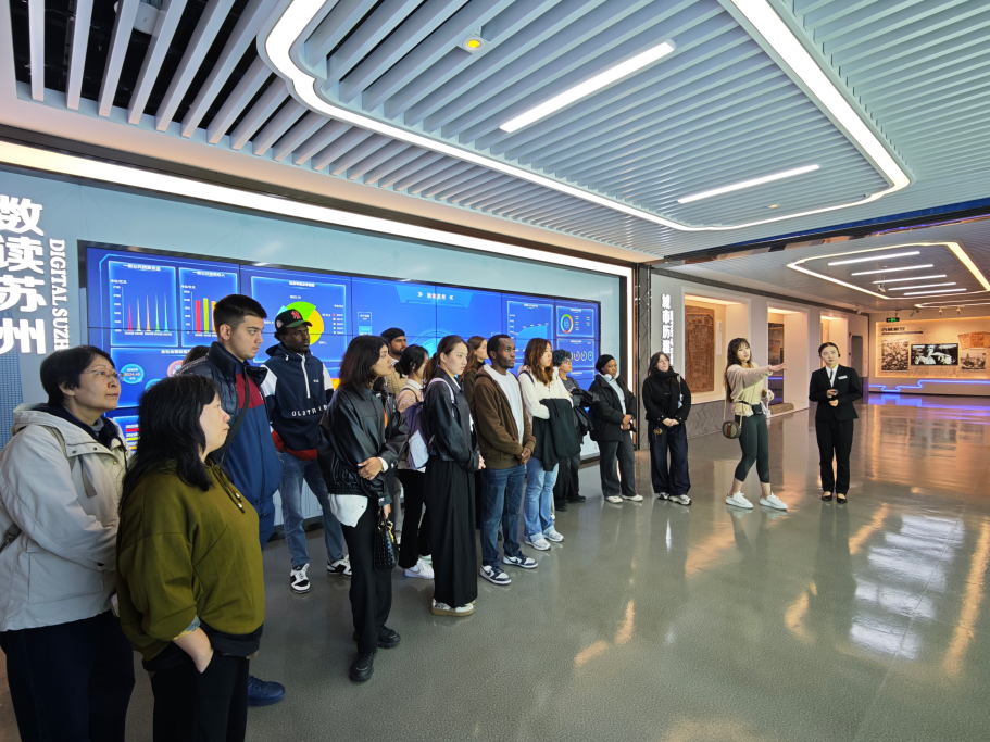 调研的最后一站转向现代发展与古城保护并重的苏州。作为国家历史文化名城与现代化典范城市,苏州在古城保护与城市发展之间的平衡之道备受关注。调研团重点参访了苏州市规划展示馆。通过沙盘模型、多媒体演示和互动体验,同学们系统了解了苏州“古城复兴、新城引领”的双轮驱动发展模式。从“水陆并行、河街相邻”的古城格局保护,到工业园区“产城融合”的国际化新城建设,苏州在空间规划与社会治理方面的精细化治理实践令师生们赞叹不已。