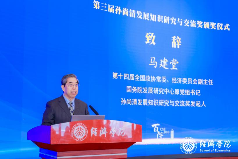 国务院发展研究中心原党组书记、奖项发起人马建堂在致辞中回顾了奖项的设立背景与发展历程,并对长期支持该奖项的各方表示感谢。他指出,孙尚清作为我国结构经济学与生产力经济学的重要开创者,在发展理论研究和决策咨询领域作出了杰出贡献。马建堂希望获奖者铭记初心,积极推动落实全球发展倡议,为发展知识创新与中国发展故事传播贡献更大力量。